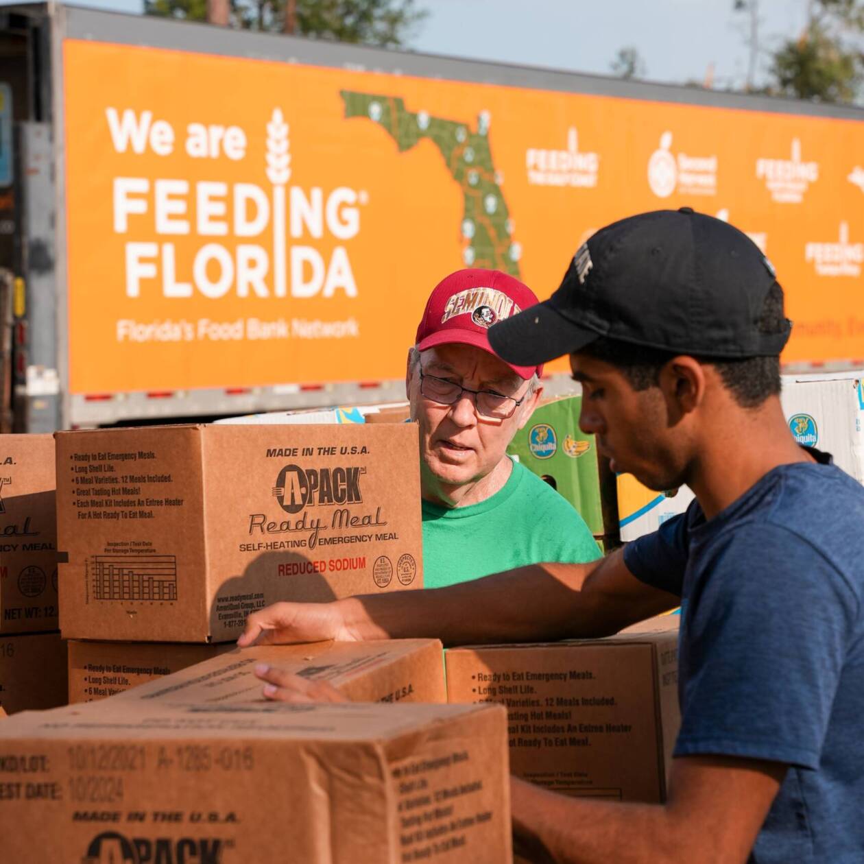 As the only network capable of ramping up 300% during times of natural disaster, Feeding Florida’s food banks have the capacity and supplies needed to provide aid to people across the state. Through our partnership with the Division of Emergency Management, we can assist the State Emergency Response Team immediately, providing life-changing resources such as pallets of water, ready to eat meals, food boxes, and more.
