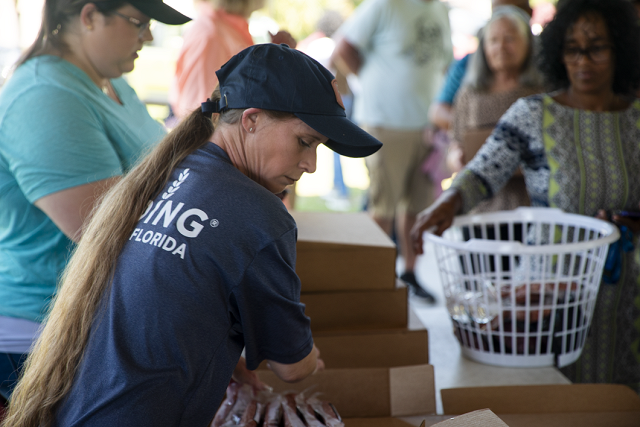 Because our food banks are dedicated to making sure every neighbor across the state has access to healthy food, they use a variety of distribution models designed to reach people wherever they are. This may look different if it’s a scheduled pantry distribution, a holiday effort, or during emergencies. But blue skies or grey, Feeding Florida’s food banks are moving food into communities and into the homes of the people who need it most.